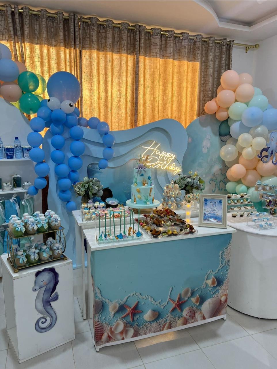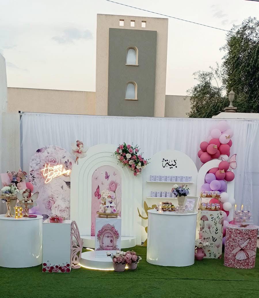 Décoration complète de salle, table et extérieur.
